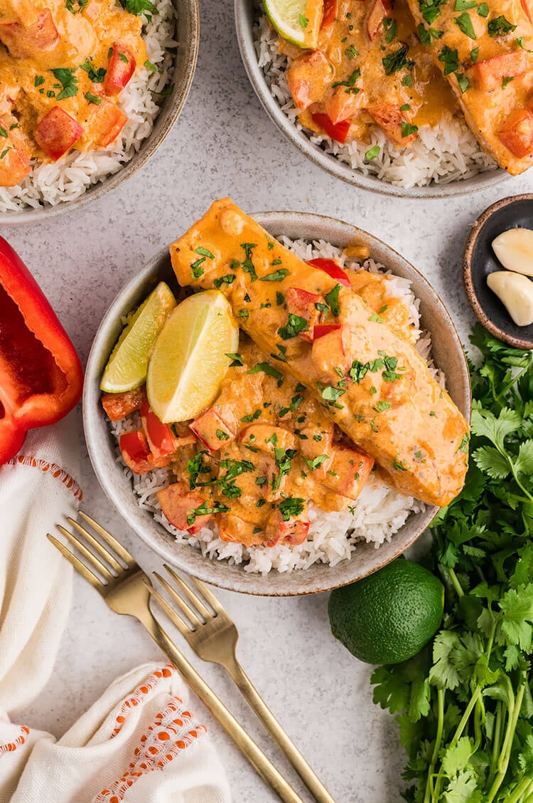 The sauce is layered with hints of garlic, ginger, and a touch of lime for brightness, creating a perfect balance of savory and slightly sweet flavors. Served over steamed rice or with fresh vegetables, it’s a comforting yet vibrant meal that feels both indulgent and wholesome.